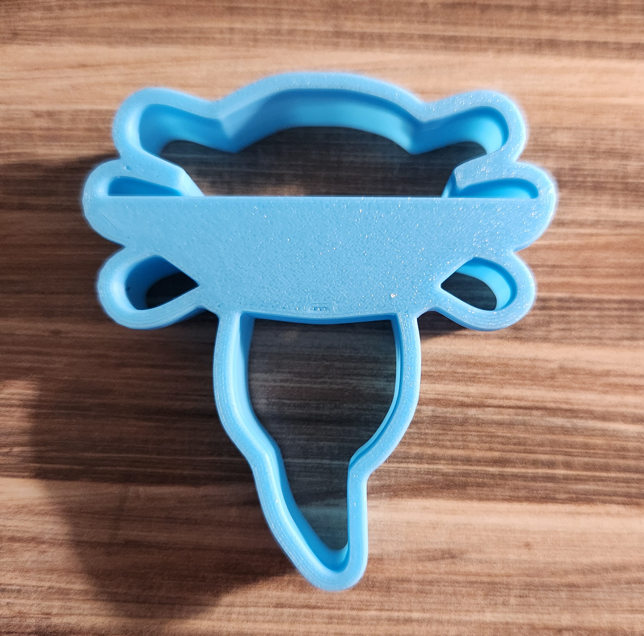 This 3D-printed Axolotl Cookie Cutter measures 3 inches in height and is perfect for baking, arts and crafts, and creative fun. Its adorable axolotl design makes it great for cookies, playdough, clay, fondant, and more. A fun and versatile tool for both kids and adults!